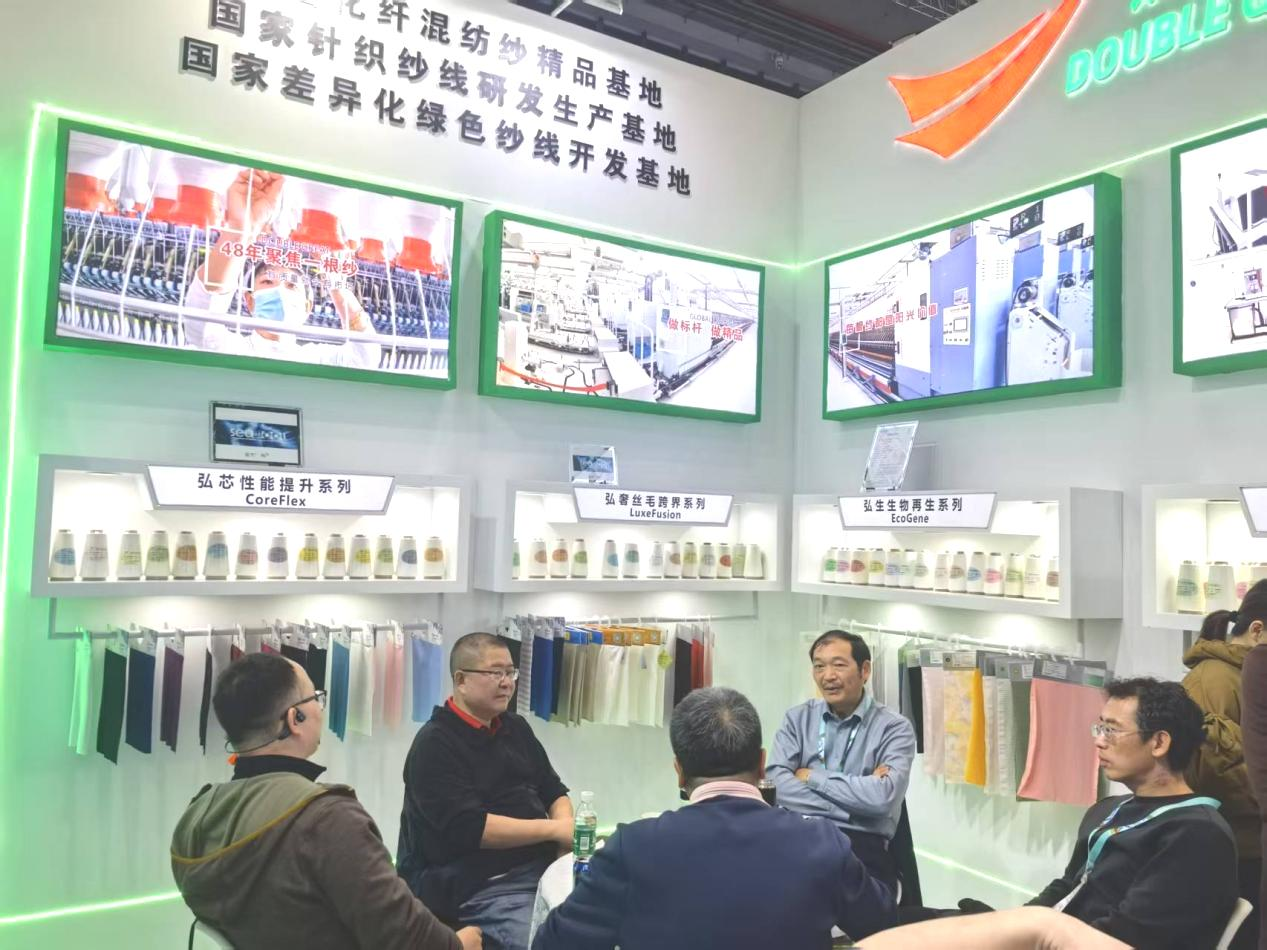 Nantong Double Great Textile Co., Ltd. přinesl na výstavu řadu exponátů, včetně diferencované série celulózových vláken, biologických sérií, biologických polyesterových sérií, diferencované série série jádra, série špičkových světů a sérií a nově vyvinuté vlněné vlněné smíšené série, biologických materiálů (polylaktové kyseliny) a dalších špičkových sérií).