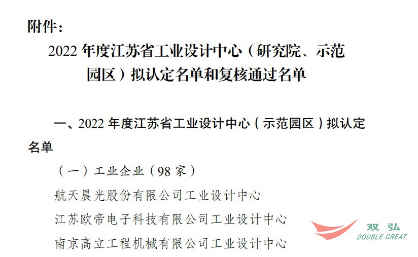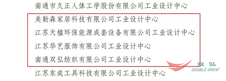 Nedávno se z provinčního oddělení průmyslu a informačních technologií Jiangsu dozvědělo, že bylo uděleno průmyslové designérské centrum společnosti Nantong Double Great Textile Co., Ltd. Název střediska průmyslového designu Jiangsu v roce 2022 .